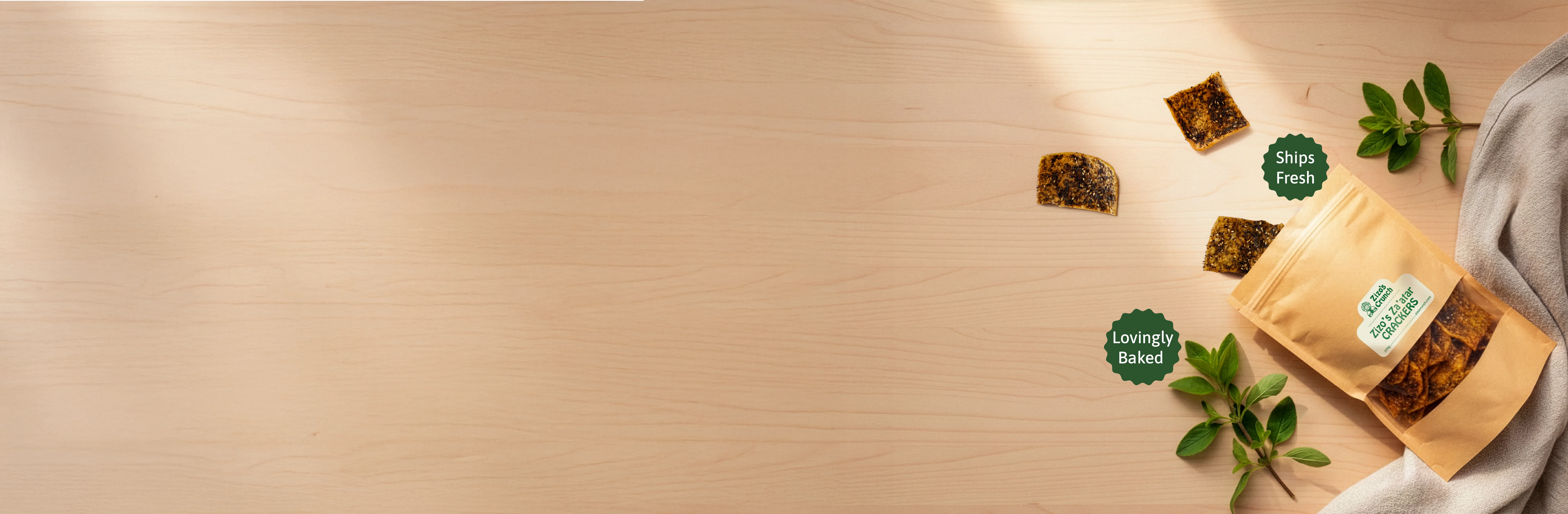 Each recipe starts with Zizo’s family pantry—za’atar, olive oil, and time-honored spice blends. We bake until every cracker is deeply golden, then ship fresh so they stay crisp from our oven to your table.